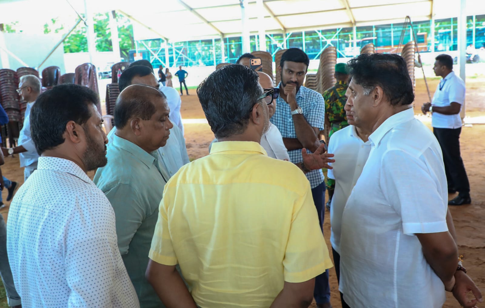 එහි දී මැයි රැළියෙ ප්‍රධාන වේදිකාය සකස් කිරීම ඇතුළු කරුණු රැසක් කෙරෙහි විපක්ෂ නායක සජිත් ප්‍රේමදාස මහතාගේ අවධානය යොමු විය. මේ අවස්ථාවට සමගි ජන බලවේගයේ මහලේකම් පාර්ලිමේන්තු මන්ත්‍රී රංජිත් මද්දුම බණ්ඩාර මහතා, ජාතික සංවිධායක තිස්ස අත්තනායක මහතා, එස්. එම් මරික්කාර් මහතා සහ මුජිබර් රහුමාන් මහතා ඇතුළු කොළඹ දිස්ත්‍රික් ප්‍රාදේශීය දේශපාලනඥයන් ඇතුළු පිරිසක් එක්විය.
